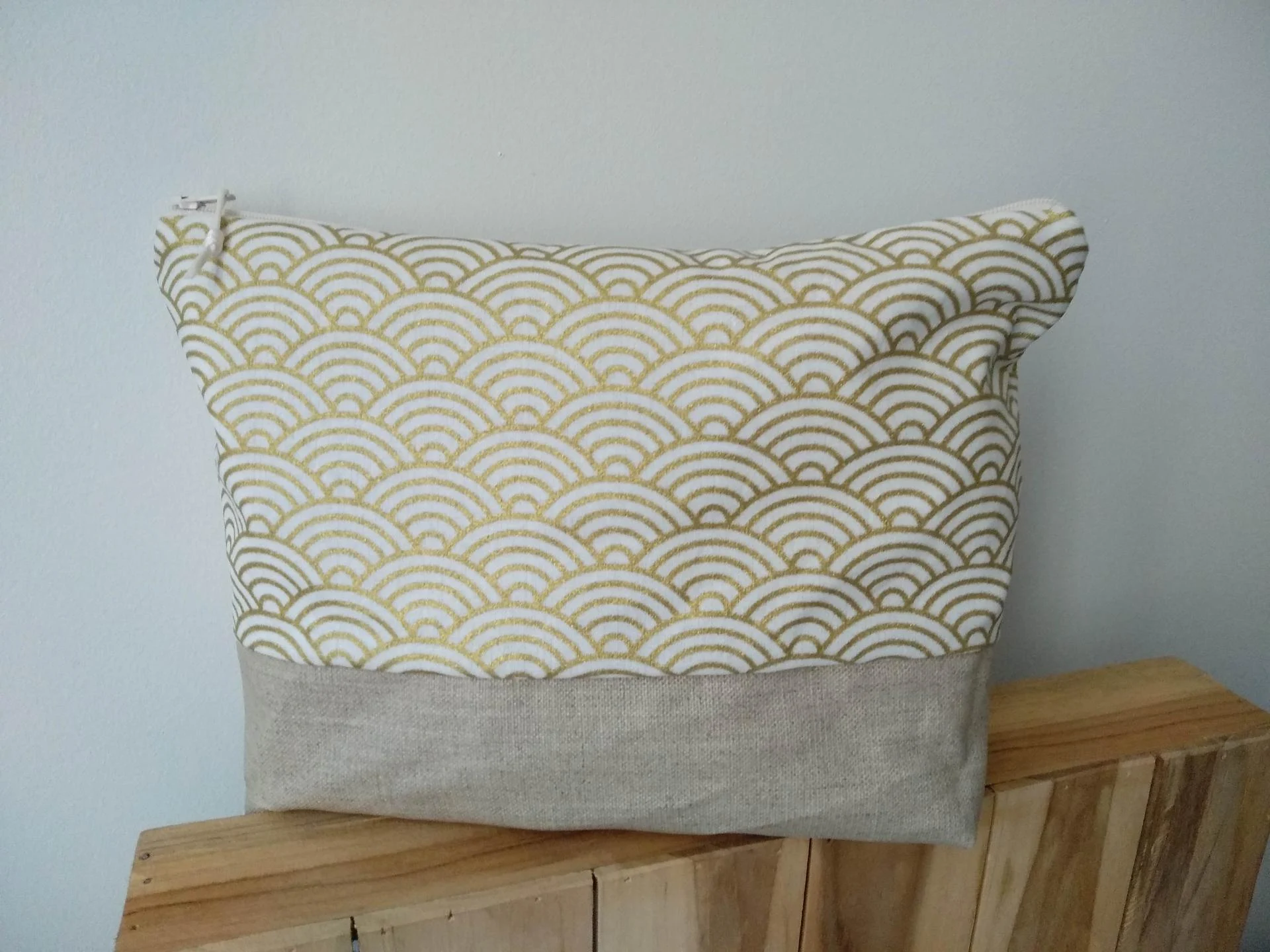 Trousse de toilette en coton pour le haut, bas en lin enduit, intérieur imperméable,